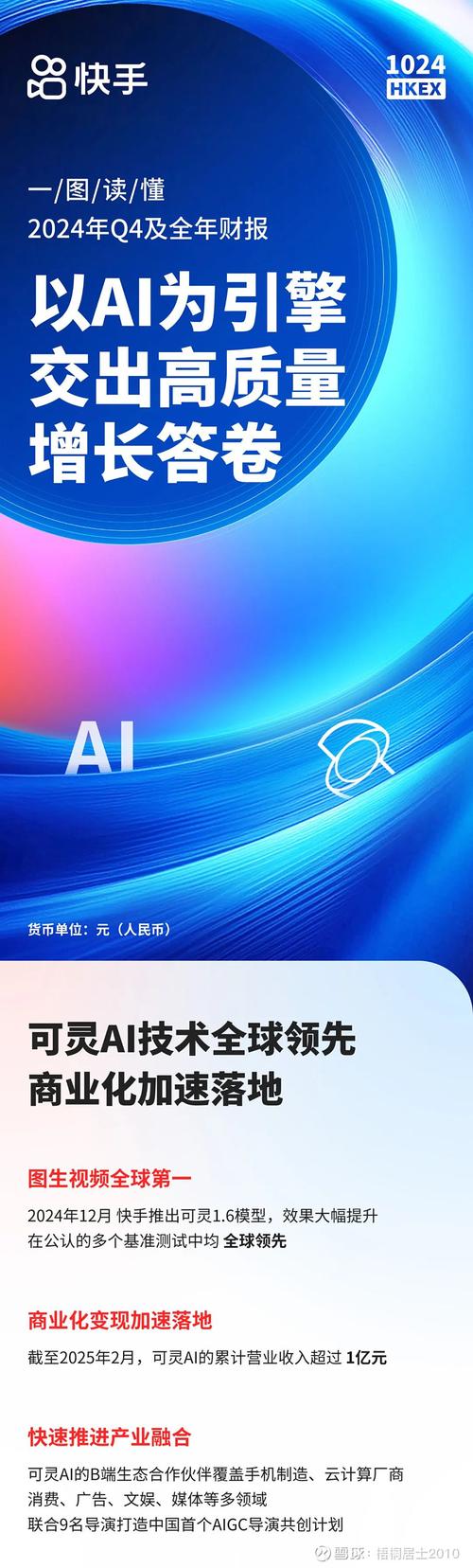 再说说未来程一笑说要坚定执行AI战略。对用户的需求,咱会认认真真去做功课。搞一个靠谱的、基于信任的AI内容,还有新发展的商业体系。这么一番计划肯定是想要长久地给用户、合作朋友还有大股东们输出实打实的价值。从这里其实可得出来,快手现在赚的钱只是个头,以后要探索的还有很多。毕竟互联网市场很复杂的,竞争对手那么多又都不弱,能够把AI这条线路搞好的话,真有可能实现程一笑的目标,在未来市场里有超级好的表现,那就说不定能赚更多钱。反正按照现在的财报和这说法 ,快手发展势头不错,可未来路还得稳着走好。