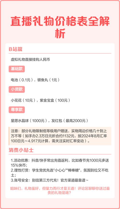 还有那让人眼前一亮的礼物盒。这可不是一般东西,买下来送给主播,里面常常包含各种礼物,像什么漂亮的鲜花、甜美的巧克力、闪耀的珠宝等,惊喜得很 。另外跑车子、飞机这些特殊虚拟礼物可吸引人眼球,独特的造型跟趣味特效,买下来送给主播 ,直播一下子就精彩不少,趣味性和互动性拉满了简直就是。