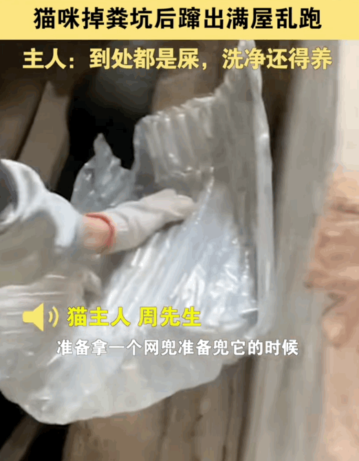 湖北咸宁的周先生,自家养的蓝猫不见了,让他十分焦虑。后来,他竟然在粪坑里找到了猫,这让他心里一阵发凉。周先生强忍着恶心去救猫,结果猫弄了一屋子屎。在这个过程中,周先生又嫌弃又无奈,最后还得给猫洗个澡。而在湖南长沙,尹女士家的猫咪钻进了蹲坑管道,她费了好大的力气才把它救出来。这事反映出主人对猫咪的深厚情感。